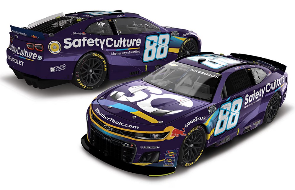 2025 Shane Van Gisbergen #88 SafetyCulture / Mexico City Win / Raced Version / Chevrolet Camaro ZL1 NASCAR 1/24 diecast, by Action Lionel. Shane Van Gisbergen raced this Trackhouse Racing #88 SafetyCulture Chevrolet Camaro ZL1 to victory in the NASCAR Cup, Viva Mexico 250 at Mexico City's Autódromo Hermanos Rodríguez on June 15, 2025. For the 2nd time in his career, Shane Van Gisbergen won a debut race for the NASCAR Cup Series on a road course.