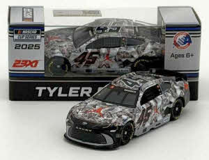 2025 Tyler Reddick #45 Jordan Brand Crystal / Toyota Camry XSE NASCAR 1/64 diecast, by Action Lionel. The 23XI Racing #45 Jordan Brand Crystal Toyota Camry XSE was raced by Tyler Reddick in the NASCAR Cup, Wurth 400 presented by LIQUI MOLY at Texas Motor Speedway on May 4, 2025. Tyler Reddick honored his wife Alexa with a diamond-laden livery. Alexa's name is next to his above the door.