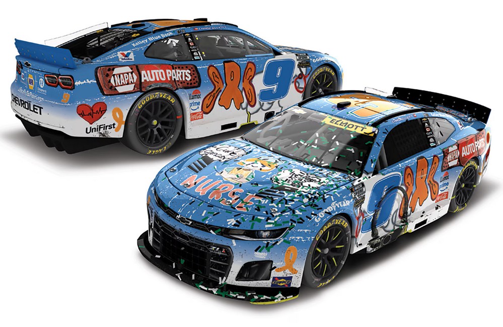 2025 Chase Elliott #9 NAPA / Children's Healthcare / Atlanta Win / Raced Version / Chevrolet Camaro ZL1 NASCAR 1/24 diecast, by Action Lionel. Chase Elliott raced this Hendrick Motorsports #9 NAPA Children's Healthcare of Atlanta Chevrolet Camaro ZL1 to victory in the NASCAR Cup, Quaker State 400 at Atlanta's Echopark Speedway on June 28, 2025.