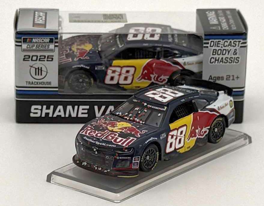 2025 Shane Van Gisbergen #88 Red Bull / Sonoma Win / Raced Version / Chevrolet Camaro ZL1 NASCAR 1/64 diecast, by Action Lionel. Shane Van Gisbergen raced this Trackhouse Racing #88 Red Bull Chevrolet Camaro ZL1 to victory in the NASCAR Cup, Toyota / Save Mart 350 at Sonoma Raceway on July 13, 2025. This was Shane Van Gisbergen's 4th NASCAR Cup Series win in 34 starts, becoming the quickest to 4 wins since Parnelli Jones in 1967.
