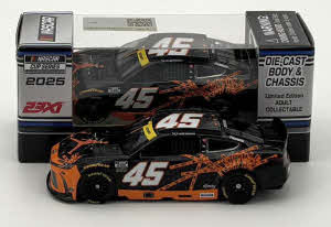 2025 Tyler Reddick #45 Jordan Brand Chicago / Toyota Camry XSE NASCAR 1/64 diecast, by Action Lionel. The 23XI Racing #45 Jordan Brand Chicago Toyota Camry XSE was raced to a 3rd place finish by Tyler Reddick in the NASCAR Cup, Grant Park 165 at the Chicago Street Course on July 6, 2025. Tyler Reddick battled for the win with a shattered backboard-themed Jordan Brand livery.