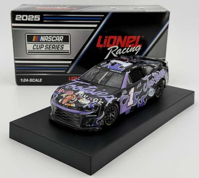 2025 Ross Chastain #1 Tootsies Orchid Lounge / Chevrolet Camaro ZL1 NASCAR 1/24 diecast, by Action Lionel. The Trackhouse Racing #1 Tootsies Orchid Lounge Chevrolet Camaro ZL1 was raced by Ross Chastain in the NASCAR Cup, Cracker Barrel 400 at Nashville Superspeedway on June 1, 2025.