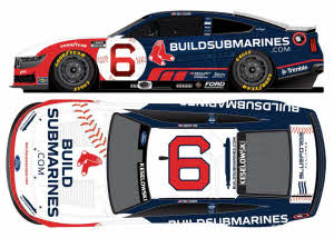 2025 Brad Keselowski #6 BuildSubmarines.com Salutes / Boston Red Sox / Ford Mustang NASCAR 1/64 diecast, by Action Lionel. The RFK Roush Fenway Keselowski Racing #6 BuildSubmarines.com Boston Red Sox Ford Mustang was raced by Brad Keselowski in the NASCAR Cup race at New Hampshire Motor Speedway on September 21, 2025. This paint scheme honors the Boston Red Sox and their home field, Fenway Park. This is a foil number car.