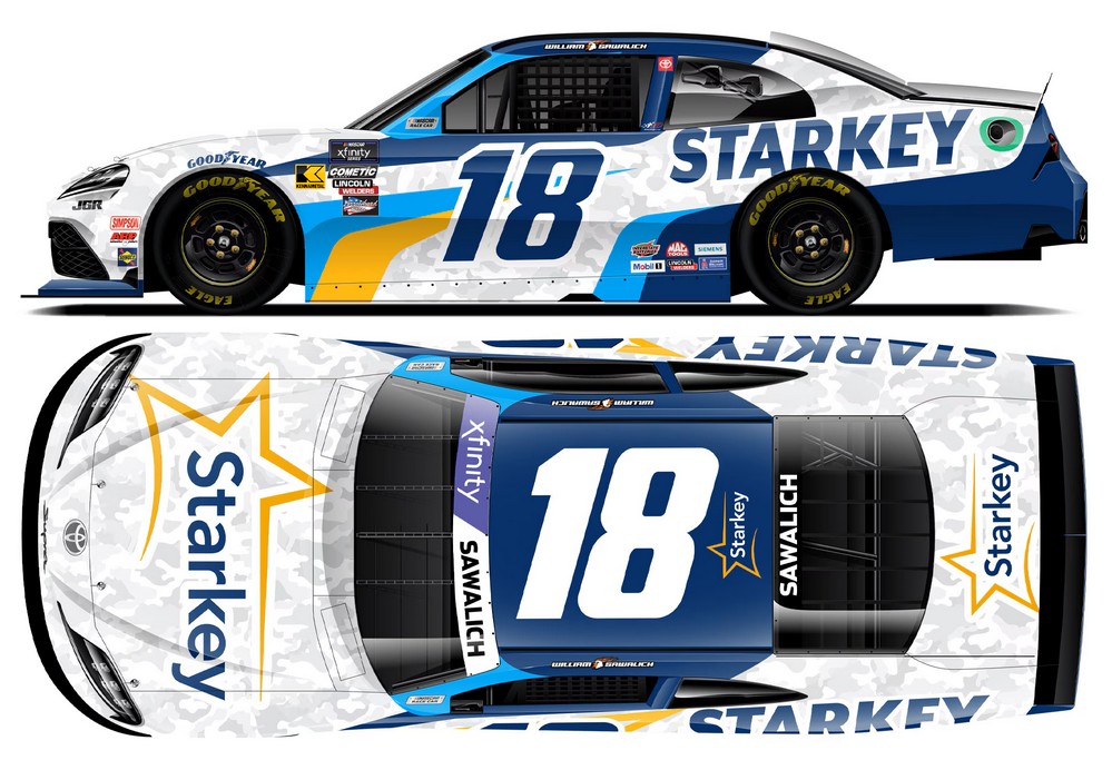 2025 William Sawalich #18 Starkey / Toyota GR Supra NASCAR 1/24 diecast, by Action Lionel. The Joe Gibbs Racing #18 Starkey Toyota GR Supra was raced by William Sawalich during the 2025 NASCAR xfinity Series season. --