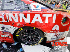 2025 William Byron #24 Cincinnati / Martinsville Win / Raced Version / Chevrolet Camaro ZL1 NASCAR 1/64 diecast, by Action Lionel Racing. William Byron raced this Hendrick Motorsports #24 Cincinnati Chevrolet Camaro ZL1 to victory in the NASCAR Cup, Xfinity 500 at Martinsville Speedway on August 26, 2025. William Byron locked himself into the Championship 4 after taking the lead with 44 laps to go. With the win, Byron will be 1 of the 4 drivers racing for a NASCAR Cup Series Championship at Phoenix Raceway.