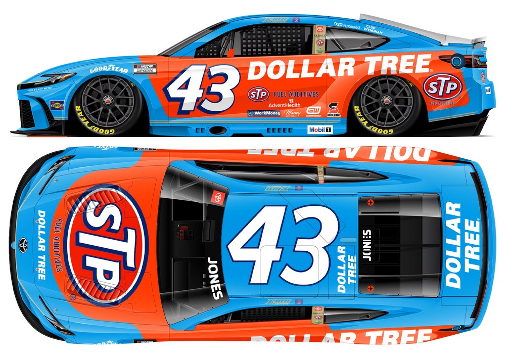 2025 Erik Jones #43 Dollar Tree / STP / Toyota Camry XSE NASCAR 1/64 diecast, by Action Lionel Racing. The LEGACY Motor Club #43 STP Dollar Tree Toyota Camry XSE was raced by Erik Jones in the NASCAR Cup, Coke Zero Sugar 400 at Daytona International Speedway on August 23, 2025.