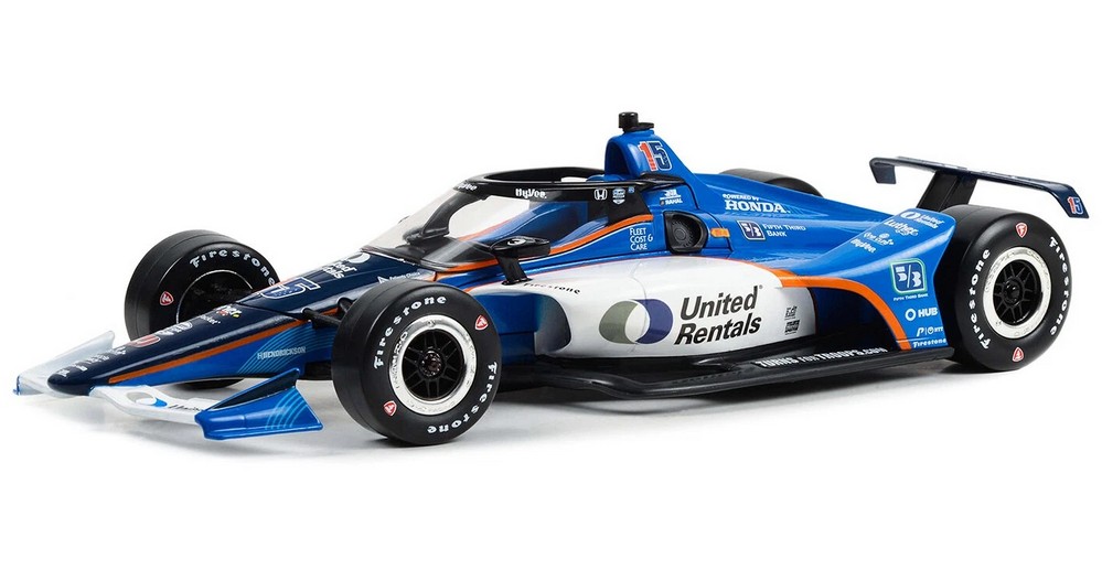 2023 Graham Rahal #15 United Rentals / Honda NTT IndyCar Series 1/18 diecast, by GreenLight. The Rahal Letterman Lanigan Racing #15 United Rentals Honda was raced by Graham Rahal during the the 2023 NTT IndyCar Series season.