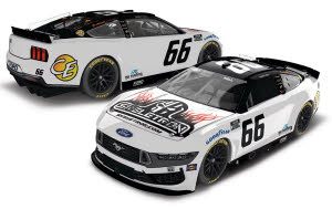 2025 Timmy Hill #66 Skeletron / Ford Mustang NASCAR 1/64 diecast, by Action Lionel Racing. The Garage 66 #66 Skeletron Ford Mustang was raced by Timmy Hill in the NASCAR Cup, Cook Out Southern 500 at Darlington Raceway on August 31, 2025. Skeletron, the toy design studio and creator of the action figure vehicle ROBOSKULL MKII, partnered with Garage 66 and driver Timmy Hill for the Southern 500 at Darlington Raceway.