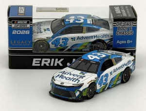 2026 Erik Jones #43 AdventHealth / Toyota Camry XSE NASCAR 1/64 diecast, by Action Lionel Racing. The LEGACY Motor Club #43 AdventHealth Toyota Camry XSE will be raced by Erik Jones during the 2026 NASCAR Cup season.