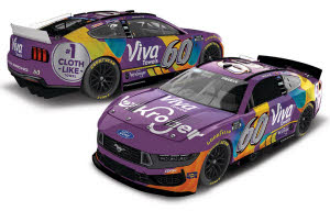 2026 Ryan Preece #60 Kroger/ Viva / Greg Biffle Tribute / Ford Mustang NASCAR 1/24 diecast, by Action Lionel Racing. The RFK Roush Fenway Keselowski Racing #60 Kroger Viva Greg Biffle Ford Mustang was raced by Ryan Preece in the NASCAR Cup, Daytona 500 at Daytona International Speedway on February 15, 2026. This car features the unique number styling that defined Biffle's career while driving for RFK Racing co-owner Jack Roush. Biffle, who tragically lost his life in late 2025, brought the organization its 1st NASCAR Championship in 2000 with a Craftsman Truck Series title, followed by a NASCAR Busch Series crown in 2002, and 19 victories over his seasons driving a Roush-owned Ford in the NASCAR Cup Series. This is a foil number car.