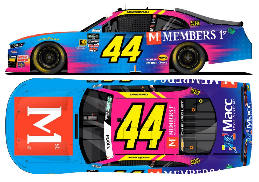 2026 Brennan Poole #44 Members 1st / Chevrolet NASCAR 1/24 diecast, by Action Lionel Racing. The Alpha Prime Racing #44 Members 1st Chevrolet will be raced by Brennan Poole in the NASCAR O’Reilly Auto Parts Series, MillerTech Battery 250 presented by KOA at Pocono Raceway on June 13, 2026. Members 1st Federal Credit Union, the preferred financial institution in the central Pennsylvania community.